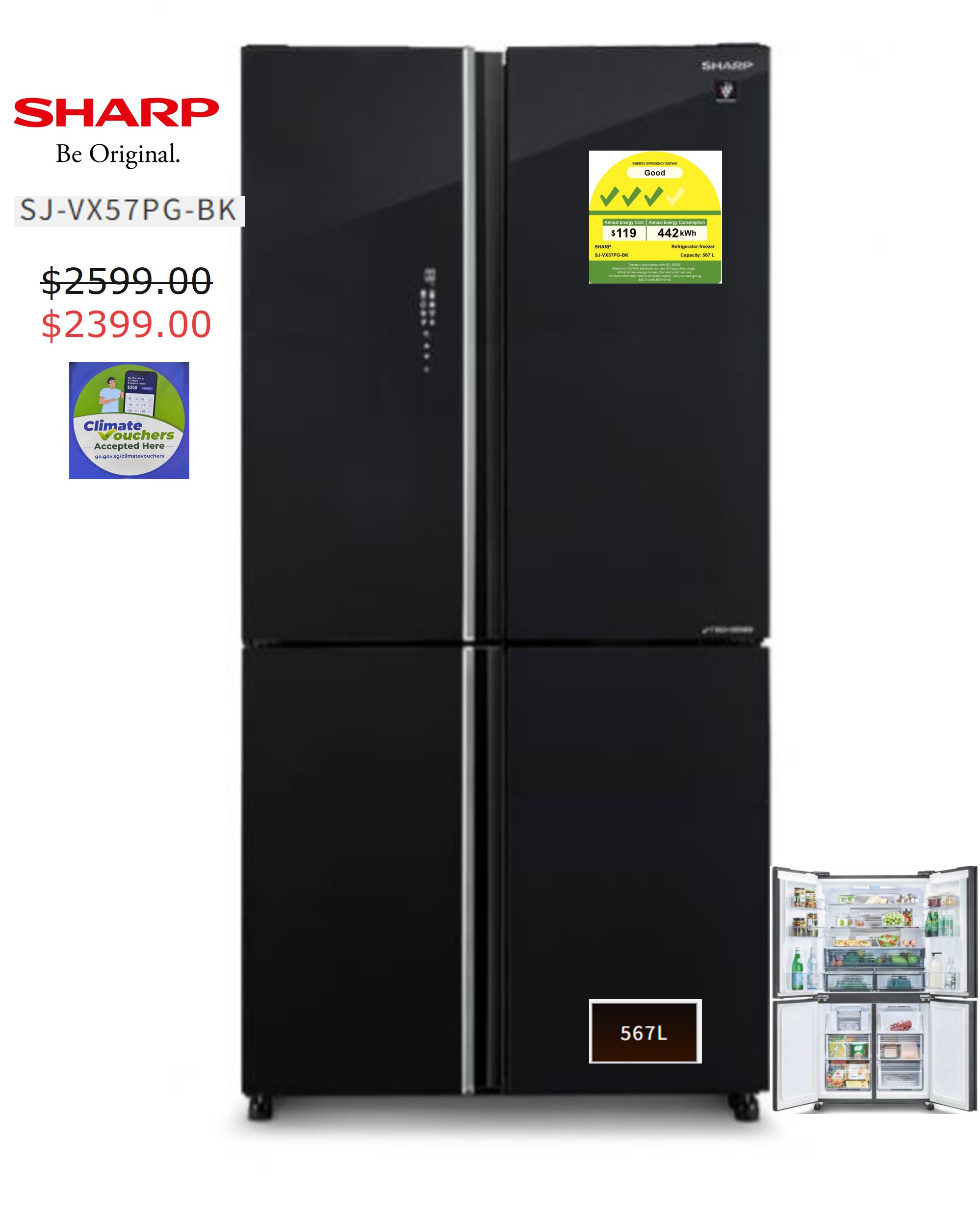 SHARP 567L 4 Multi Doors Refrigerator SJ-VX57PG-BK