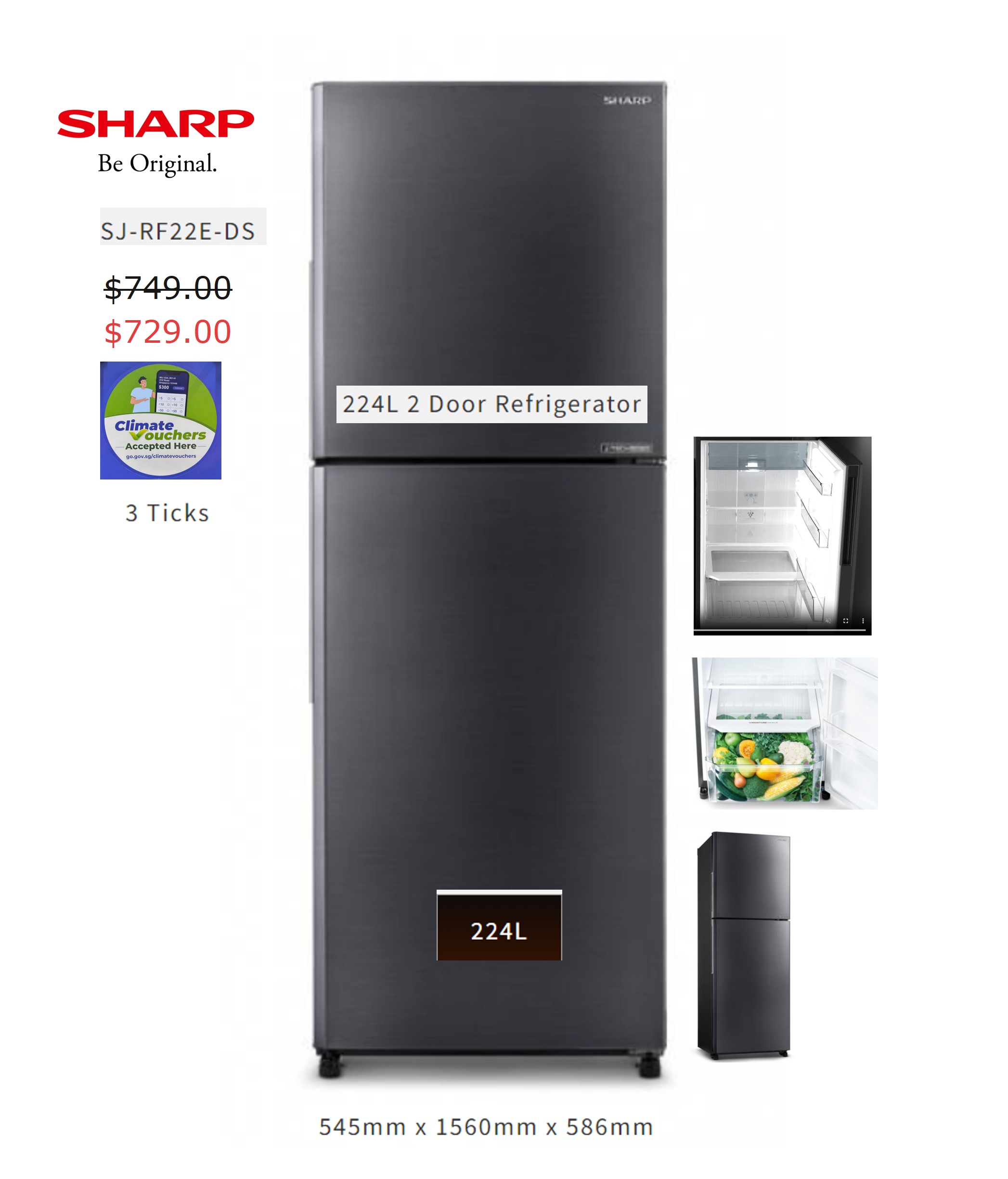SHARP SJ-RF22E-DS 2 DR FRIDGE (224L)