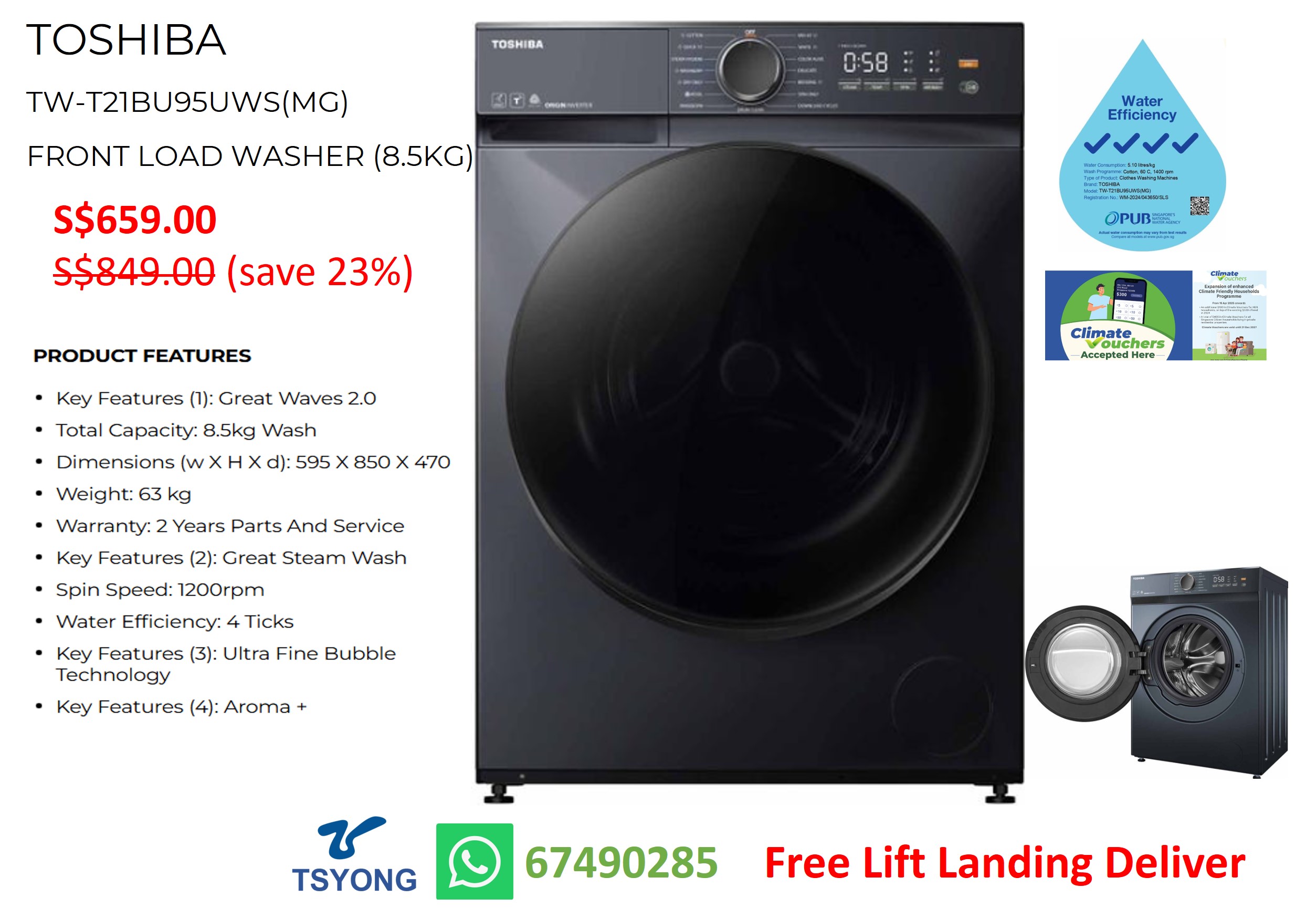 Total Capacity: 8.5kg Wash