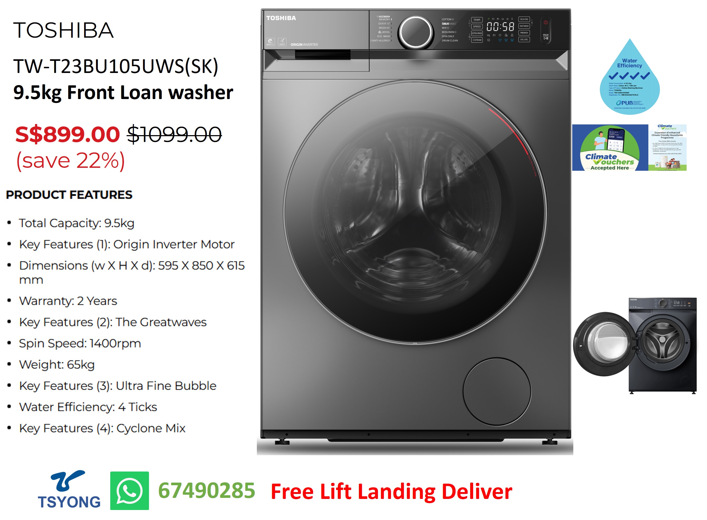 Total Capacity: 9.5kg