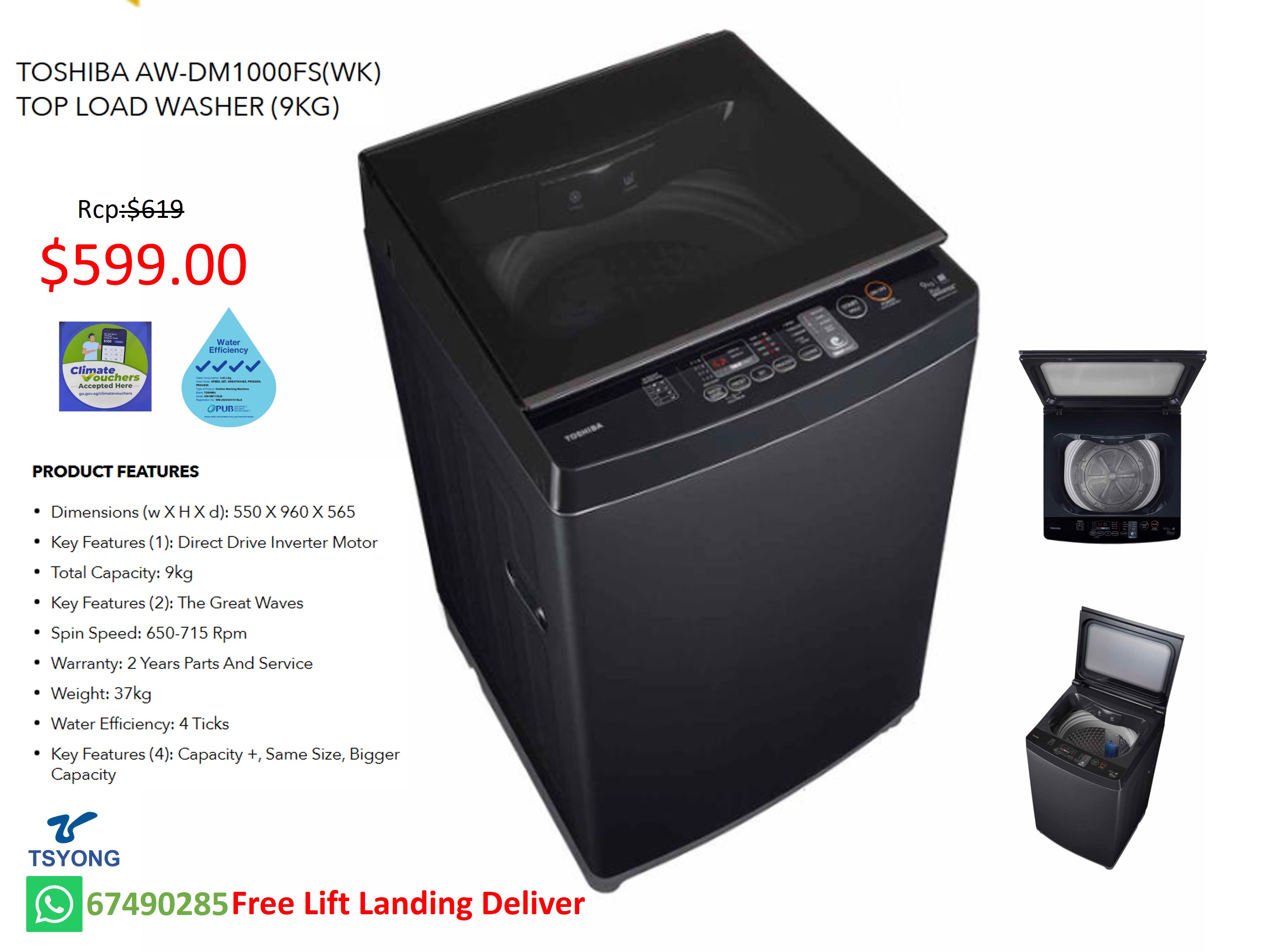 TOSHIBA AW-DM1000FS(WK) TOP LOAD WASHER (9KG)