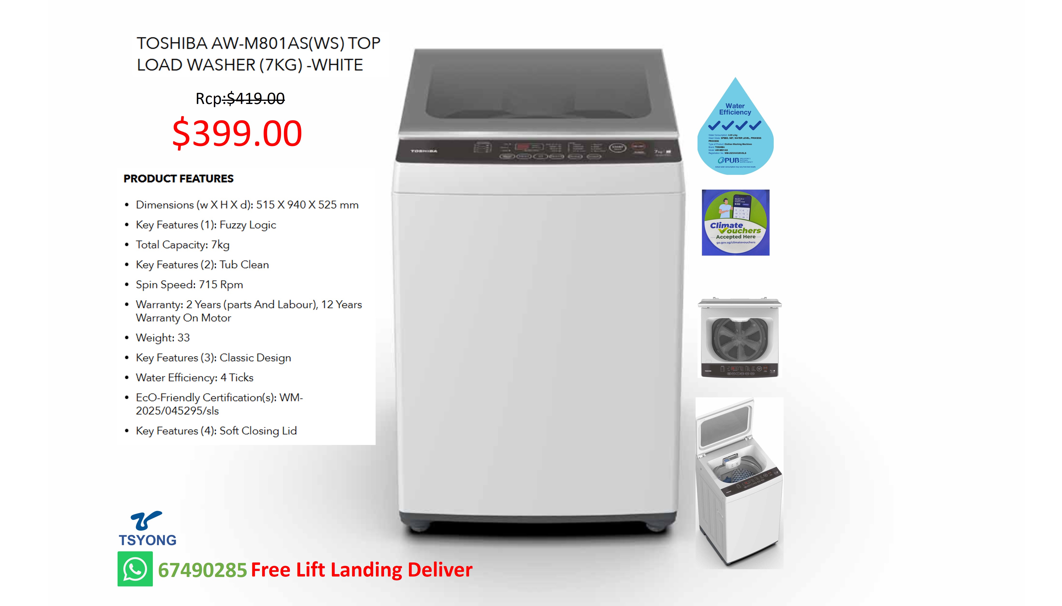 TOSHIBA AW-M801AS(WS) TOP LOAD WASHER (7KG) -WHITE