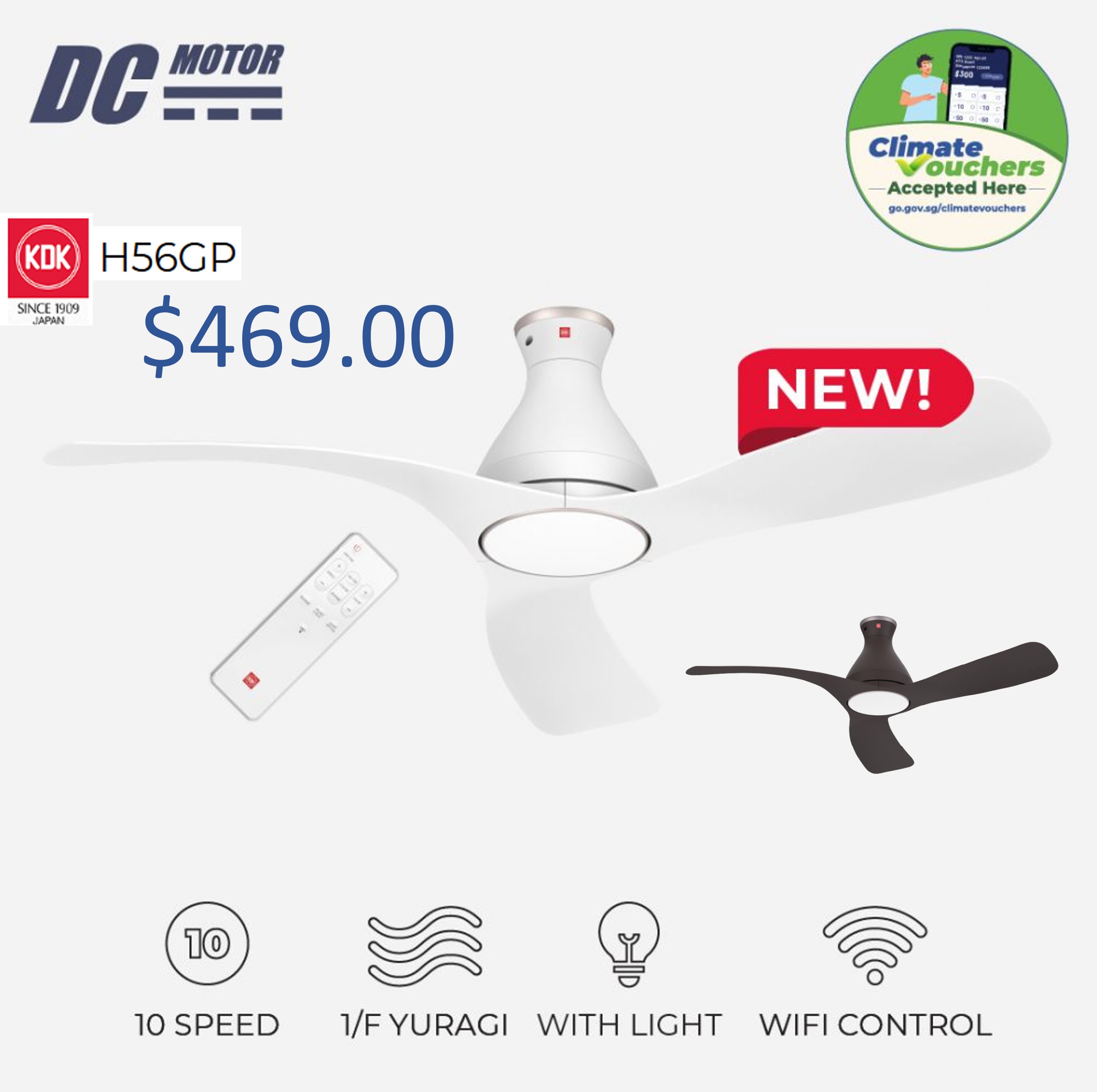 KDK H56GP(WH) 56 IN DC CEILING FAN WITH LIGHT (140CM)-WHITE